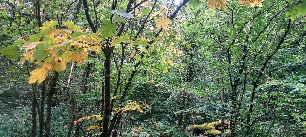I take in the last stretch of off track mud path, breathing the slightly cooler, mulch scented woodland air deeply, and a hazy autumn sun peeps calmly through the trees.